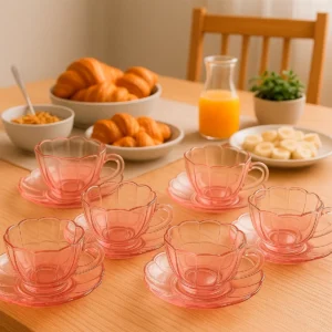 Jogo 6 Xícaras Em Vidro Com Pires Café Peach 90ml